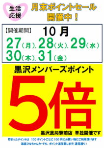 黒沢薬局 駅前店 限定、月末ポイントセール開催‼