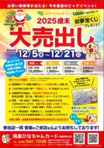 全店 鴻巣ひなちゃんカード 『2025歳末 大売出し』 2025.12.05 2025歳末 大売出し 12/5(金)~12/21(日)開催いたします!! 1,000円毎のお買い物で【初夢宝くじ】1枚進呈いたします 皆様のご来店を心よりお待ちしております💕 駅前店 『慢性冷え改善』