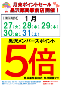 黒沢薬局 駅前店 限定、月末ポイントセール開催